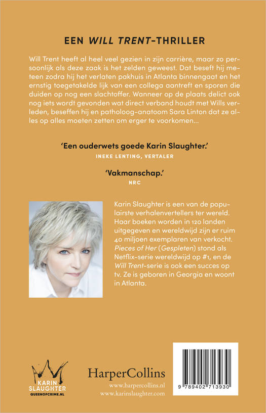 Will Trent heeft al heel veel gezien in zijn carrière, maar zo persoonlijk als deze zaak is het zelden geweest. Dat beseft hij meteen zodra hij het verlaten pakhuis in Atlanta binnengaat en het ernstig toegetakelde lijk van een collega aantreft en sporen die duiden op nog een slachtoffer. Wanneer op de plaats delict ook nog iets wordt gevonden wat direct verband houdt met Wills verleden, beseffen hij en patholoog-anatoom Sara Linton dat ze alles op alles moeten zetten om erger te voorkomen...