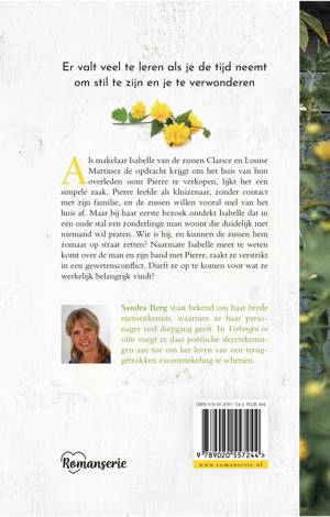 Verborgen in stilte van Sandra Berg is een warm verhaal vol poëtische sfeerimpressies. Makelaar Isabelle krijgt van zussen Clarice en Louise de opdracht het huis van hun overleden oom Pierre te verkopen. Hij leefde als een kluizenaar en ze hadden nauwelijks contact met hem. Maar bij haar eerste bezoek ontdekt Isabelle dat in een oude stal achter het huis een eigenaardige man woont, die duidelijk met niemand wil praten. Wie is hij, en kunnen de zussen hem zomaar op straat zetten? Naarmate Isabelle meer te weten komt over de man en zijn band met Pierre, raakt ze verstrikt in een gewetensconflict. Durft ze op te komen voor wat ze werkelijk belangrijk vindt?