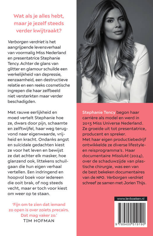 Verborgen verdriet is het aangrijpende levensverhaal van voormalig Miss Nederland en presentatrice Stephanie Tency, geschreven door Jorien Thijs. Achter de glans van glitter en glamour schuilde een werkelijkheid van depressie, eenzaamheid, een destructieve relatie en een reeks cosmetische ingrepen die haar zelfbeeld niet versterkten maar verder beschadigden.