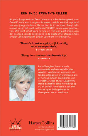 Als patholoog-anatoom Sara Linton voor vakantie terugkeert naar Grant County, wordt ze geconfronteerd met de verdrinkingsdood van een jonge studente. De verdachte in de zaak pleegt zelfmoord; in zijn cel staat met bloed ‘IK NIET’ op de muur geschreven. Will Trent schiet Sara te hulp en treft een politieteam aan dat de dood van de gevangene in de doofpot wil stoppen. Ook officier Lena Adams lijkt dingen voor hem te verzwijgen...