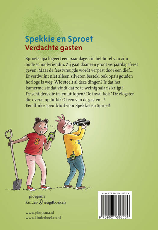 Sproets opa logeert een paar dagen in het hotel van zijn oude schoolvriendin. Zij gaat daar een groot verjaardagsfeest geven. Maar de feestvreugde wordt verpest door een dief… Er verdwijnt niet alleen zilveren bestek, ook opa’s gouden horloge is weg. Wie steelt al deze dingen? Is dat het kamermeisje dat vindt dat ze te weinig salaris krijgt? De schilders die in- en uitlopen? De inval-kok? De vlogster die overal opduikt? Of een van de gasten…? Een flinke speurkluif voor Spekkie en Sproet!