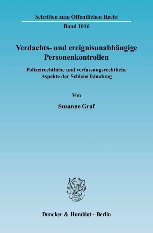 Die Autorin stellt das polizeiliche Instrument der Schleierfahndung vor und analysiert die polizeirechtlichen und verfassungsrechtlichen Aspekte dieser neuartigen Maßnahme. Dabei geht es vor allem um die Beantwortung der Frage, ob die Schleierfahndung den besonderen rechtlichen Anforderungen genügt, die an Maßnahmen der Informationsgewinnung zu stellen sind.