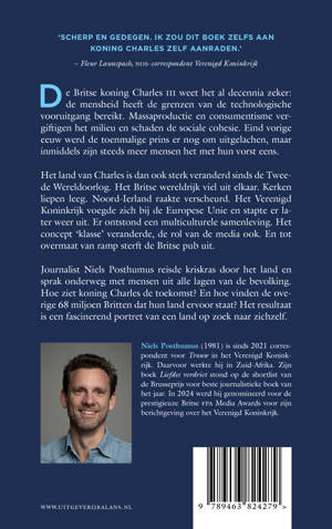Journalist Niels Posthumus reisde kriskras door het land en sprak onderweg met mensen uit alle lagen van de bevolking. Hoe ziet de nieuwe vorst de toekomst, en hoe vinden de overige 68 miljoen Britten dat hun land ervoor staat? Het resultaat is een fascinerend portret van een land op zoek naar zichzelf.