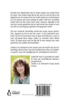 Op een winterse namiddag wordt een oude vrouw gevonden, liggend op het ijs van een vaart. In het ziekenhuis probeert zij zich te herinneren hoe ze daar terechtkwam, maar in haar verwarde brein lopen heden en verleden door elkaar heen. Ze gaat terug naar de tijd dat ze een meisje was, toen geheimen de realiteit vertroebelden. Verder is er niemand is een roman over de kracht van de verbeelding, die het leven van de hoofdpersoon kleur en betekenis geeft, maar die tegelijkertijd de werkelijkheid ontwricht.