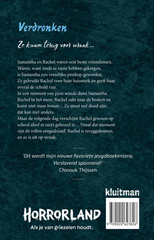 Samantha en Rachel waren ooit beste vriendinnen. Wáren, want sinds ze ruzie hebben gekregen, is Samantha een vreselijke pestkop geworden. Ze gebruikt Rachel voor haar huiswerk en geeft haar overal de schuld van. In een moment van pure woede duwt Samantha Rachel in het meer. Rachel zakt naar de bodem en komt niet meer boven… Ze moet wel dood zijn, dat kan niet anders.