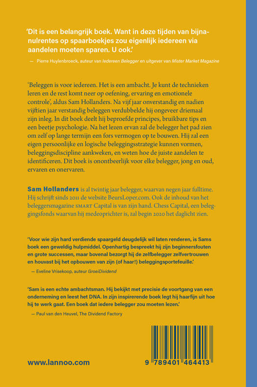 Na vijf jaar onverstandig en nadien vijftien jaar verstandig beleggen verdubbelde hij ongeveer driemaal zijn inleg. In dit boek deelt hij beproefde principes, bruikbare tips en een beetje psychologie. Na het lezen ervan zal de belegger het pad zien om zelf op lange termijn een fors vermogen op te bouwen. Hij zal een eigen persoonlijke en logische beleggingsstrategie kunnen vormen, beleggingsdiscipline aankweken, en weten hoe de juiste aandelen te identificeren. Dit boek is onontbeerlijk voor elke belegger, jong en oud, ervaren en onervaren.