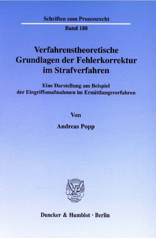 Die normative Bestimmung der "richtigen" Folge eines bestimmten Verfahrensfehlers setzt eine Analyse des "Bauplans" des betreffenden Verfahrens und Kenntnis der damit konstruktiv möglichen Fehlerfolgen voraus. Der Autor liefert damit einen Beitrag zur Systematisierung möglicher Fehlerfolgen im Strafverfahren, wobei er sich sachlich auf Fehler bei Eingriffsmaßnahmen im Ermittlungsverfahren und methodisch auf einen empirisch-analytischen Ansatz auf dem Boden einer Allgemeinen Verfahrenstheorie beschränkt. Die (u. a. in Auseinandersetzung mit James Goldschmidt gewonnene) rechts- und systemtheoretische Perspektive ermöglicht die Einsicht in die Komplexität "des" Verfahrens und in die damit verbundene Komplexität der konstruktiv möglichen Fehlerfolgen. Nachgegangen wird auch den theoretischen Voraussetzungen des Verfahrensfehler-Begriffs. Anschließend überträgt Andreas Popp die im Verwaltungsverfahrensrecht vorgefundene Systematik auf die Folgen von Fehlern im Ermittlungsverfahren, in dem er an einem Beispiel die rechtlichen und rechtstheoretischen Grundlagen erarbeitet, an die eine normative Fehlerfolgenlehre anknüpfen kann.