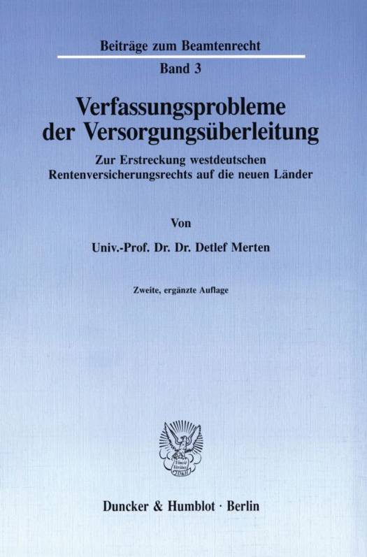 Die Rentenüberleitung, insbesondere die Überführung der Versorgungssysteme, hat sich als eines der schwierigsten Kapitel der Wiedervereinigung erwiesen. Viele rigide Regelungen sind politisch und verfassungsrechtlich nach wie vor umstritten, zumal Entscheidungen des Bundesverfassungsgerichts noch ausstehen und der nachbessernde Gesetzgeber der Rechtsprechung des Bundessozialgerichts nur auf halbem Wege gefolgt ist. So wundert es nicht, daß die vorliegende Untersuchung wenige Wochen nach ihrem Erscheinen vergriffen war. Die Neuauflage berücksichtigt im Rahmen des Möglichen die Entwicklung in Rechtsprechung und Schrifttum.
