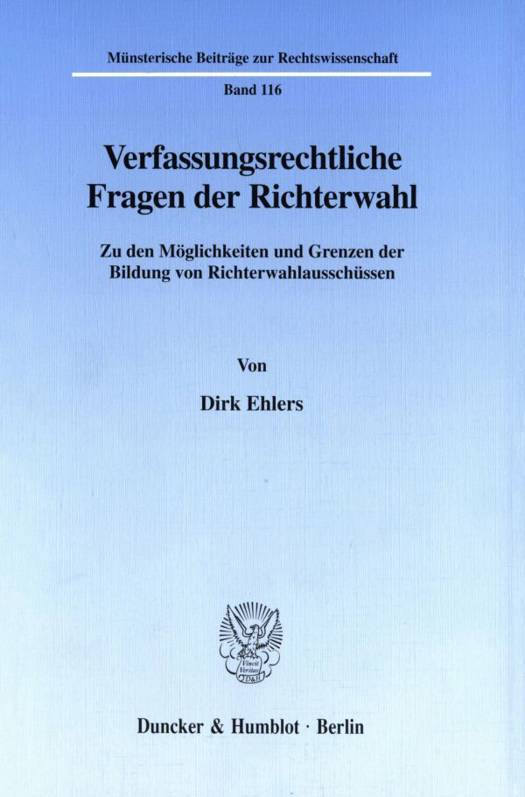Da der Gerichtsbarkeit im heutigen Gemeinwesen eine außerordentlich große Bedeutung zukommt, muß der Auswahl der Richter höchste Aufmerksamkeit geschenkt werden. Insbesondere kommt es darauf an, wem die Personalauswahl obliegt. In den Bundesländern erfolgt die Auswahl der Richter teils ausschließlich durch die Landesregierung oder bestimmte Minister, teils entscheiden die genannten Instanzen im Einvernehmen mit einem Richterwahlausschuß. Die Schrift geht der in der Praxis akut gewordenen Frage nach, ob es zulässig ist, die Auswahl der Richter einem Parlamentsausschuß zu übertragen. Dies wirft grundsätzliche Fragen der Gewaltenteilung im Verhältnis von Legislative und Exekutive auf, die im einzelnen näher untersucht werden. Der Verfasser kommt zu dem Ergebnis, daß einem Richterwahlausschuß auf Landesebene nach dem Grundgesetz höchstens das gleiche Entscheidungsgewicht wie dem »Justizminister« zukommen darf. Es ist somit nicht zulässig, Richterwahlausschüsse einzurichten, die in der Lage sind, den Justizminister zu überstimmen. Zudem steht in Nordrhein-Westfalen die Landesverfassung einer Parlamentarisierung der Richterwahl entgegen, weil die Auswahl der Richter allein der »Landesregierung« obliegt. Soll der Regierung die Entscheidung über die Personalauswahl der Richter genommen und einem aus Parlamentariern zusammengesetzten Richterwahlausschuß übertragen werden, müßten zuvor sowohl das Grundgesetz als auch die Landesverfassung geändert werden.