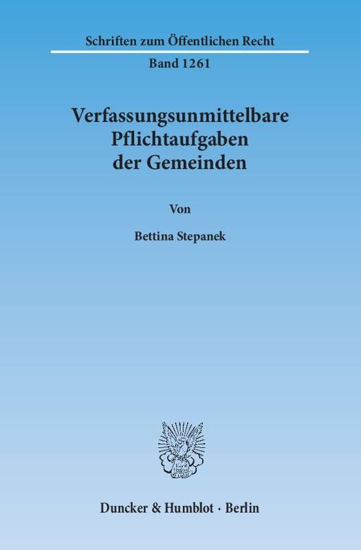 Veranlasst durch eine Entscheidung des Bundesverwaltungsgerichts, die die gefestigte Dogmatik der grundgesetzlichen Selbstverwaltungsgarantie erschüttert und die kommunale Praxis verunsichert hat, geht die Arbeit der bisher kaum beachteten Frage nach, ob mit dem Recht der Gemeinden zur eigenverantwortlichen Regelung ihrer Angelegenheiten auch eine Pflicht korrespondiert, bestimmte Aufgaben wahrzunehmen.
