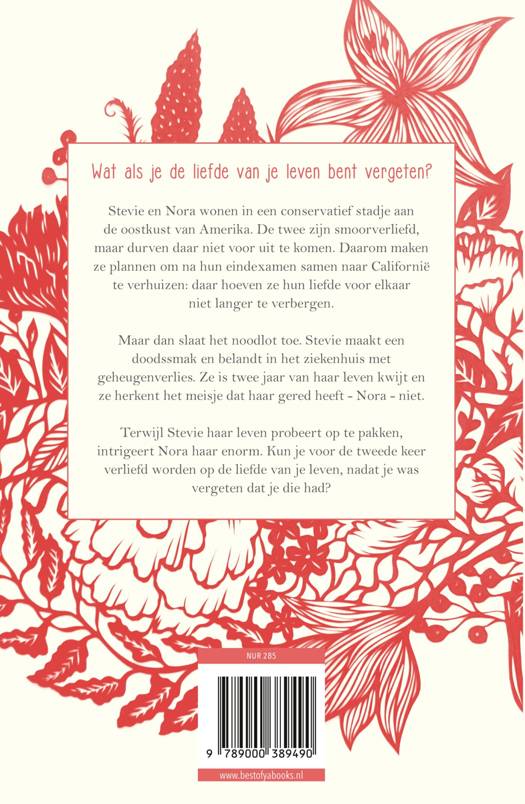 Stevie en Nora wonen in een oerconservatief dorp én zijn smoorverliefd. Als ze op het punt staan om samen naar Californië te verhuizen voor hun studie, slaat het noodlot toe. Stevie maakt een doodssmak en belandt in het ziekenhuis met geheugenverlies. Ze is twee jaar van haar leven kwijt en ze herkent het meisje dat haar naar het ziekenhuis heeft gebracht – Nora – niet. Terwijl Stevie met horten en stoten haar leven probeert op te pakken, intrigeert Nora haar enorm. Kun je voor de tweede keer verliefd worden op de liefde van je leven, terwijl je was vergeten dat je die had?
