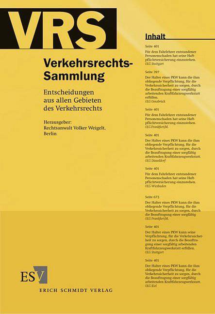 Die renommierte Verkehrsrechts-Sammlung (VRS) stellt die wichtigsten Urteile und Beschlüsse aus allen Gebieten des Verkehrsrechts zusammen. Regelmäßig bietet die VRS aktuellste Entscheidungen - als handliche Printausgabe oder komfortable digitale Version. Umfassend deckt die VRS sämtliche Standardbereiche des Verkehrsrechts zuverlässig ab - ergänzt durch zahlreiche themenverwandte Rechtsgebiete, u. a.:-Verkehrshaftpflicht-Verkehrsstrafrecht-Recht der Ordnungswidrigkeiten-Verkehrsverwaltungsrecht-Kraftverkehrsversicherungsrecht-Speditionsrecht-Frachtrecht-Schifffahrtsrecht-LuftverkehrsrechtBei Experten genießt die VRS hohe Anerkennung: Die Printausgabe der VRS ist ein häufig zitiertes Standardwerke für Verkehrsjuristen - sie kommt auch beim BGH zum Einsatz!