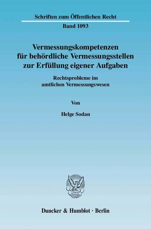 Helge Sodan geht u. a. den Fragen nach, was unter der "Erfüllung eigener Aufgaben" als sachlicher Voraussetzung von Liegenschaftsvermessungen (anderer) behördlicher Vermessungsstellen im Sinne der Landesvermessungsgesetze zu verstehen ist und ob behördliche Vermessungsstellen zur Erfüllung eigener Aufgaben/Angelegenheiten Beurkundungen vornehmen dürfen.