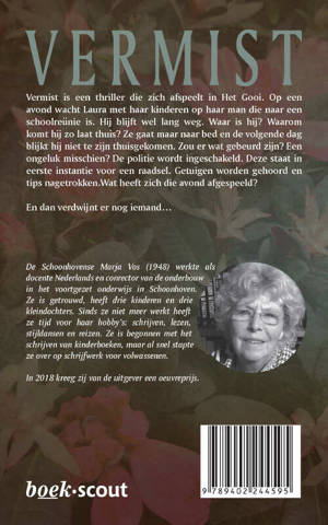 Vermist is een thriller die zich afspeelt in Het Gooi. Op een avond wacht Laura met haar kinderen op haar man die naar een schoolreünie is. Hij blijft wel lang weg. Waar is hij? Waarom komt hij zo laat thuis? Ze gaat maar naar bed en de volgende dag blijkt hij niet te zijn thuisgekomen. Zou er wat gebeurd zijn? Een ongeluk misschien? De politie wordt ingeschakeld. Deze staat in eerste instantie voor een raadsel. Getuigen worden gehoord en tips nagetrokken.Wat heeft zich die avond afgespeeld?En dan verdwijnt er nog iemand…