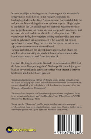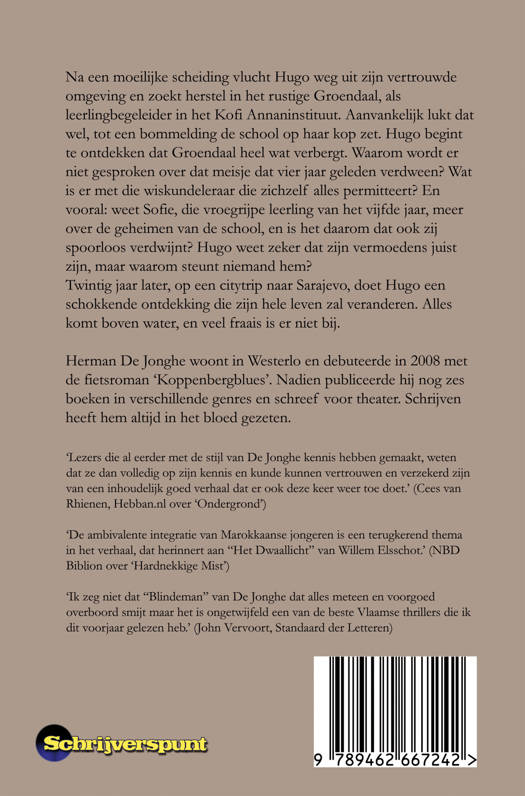 Na een moeilijke scheiding vlucht Hugo weg uit zijn vertrouwde omgeving en zoekt herstel in het rustige Groendaal, als leerlingbegeleider in het Kofi Annaninstituut. Aanvankelijk lukt dat wel, tot een bommelding de school op haar kop zet. Hugo begint te ontdekken dat Groendaal heel wat verbergt. Waarom wordt er niet gesproken over dat meisje dat vier jaar geleden verdween? Wat is er met die wiskundeleraar die zichzelf alles permitteert? En vooral: weet Sofie, die vroegrijpe leerling van het vijfde jaar, meer over de geheimen van de school, en is het daarom dat ook zij spoorloos verdwijnt? Hugo weet zeker dat zijn vermoedens juist zijn, maar waarom steunt niemand hem? Twintig jaar later, op een citytrip naar Sarajevo, doet Hugo een schokkende ontdekking die zijn hele leven zal veranderen. Alles komt boven water, en veel fraais is er niet bij.