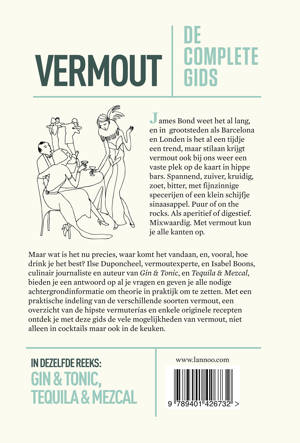 Een praktische gids boordevol inspiratie en kennis James Bond weet het al lang, en in grootsteden als Barcelona en Londen is het al een tijdje een trend, maar stilaan krijgt vermout ook bij ons weer een vaste plek op de kaart in hippe bars. Spannend, zuiver, kruidig, zoet, bitter, met fijnzinnige specerijen of een klein schijfje sinaasappel. Puur of on the rocks. Als aperitief of digestief. Mixwaardig. Met vermout kun je alle kanten op. Maar wat is het nu precies, waar komt het vandaan, en, vooral, hoe drink je het best? Ilse Duponcheel, vermoutexperte, en Isabel Boons, culinair journaliste en auteur van Gin & Tonic, en Tequila & Mezcal, bieden je een antwoord op al je vragen en geven je alle nodige achtergrondinformatie om theorie in praktijk om te zetten. Met een praktische indeling van de verschillende soorten vermout, een overzicht van de hipste vermuterias en enkele originele recepten ontdek je met deze gids de vele mogelijkheden van vermout, niet alleen in cocktails maar ook in de keuken.