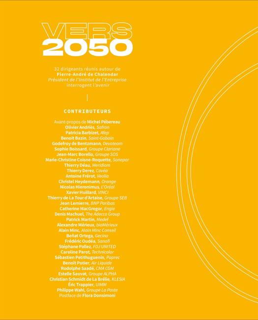 A l'occasion du cinquantenaire de l'Institut de l'entreprise, 32 hauts dirigeants pensent la démographie, l'écologie, la technologie et la gouvernance de 2050, ainsi que leurs impacts sur l'entreprise et la société dans son ensemble.