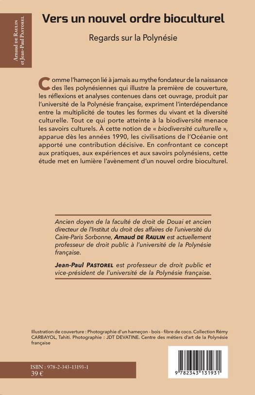 Cet ouvrage souligne l'interdépendance entre la multiplicité de toutes les formes du vivant et la diversité culturelle. Tout ce qui porte atteinte à la biodiversité menace les savoirs culturels. À cette notion de « biodiversité culturelle », apparue dès les années 1990, les civilisations de l'Océanie ont apporté une contribution décisive. En confrontant ce concept aux pratiques et aux savoirs polynésiens, cette étude met en lumière l'avènement d'un nouvel ordre bioculturel.