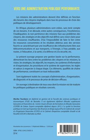En Afrique, plusieurs administrations sont créées, sans tenir compte des besoins des citoyens. Cet ouvrage propose une gestion basée sur la performance, démontrant les liens entre les problèmes des citoyens et les missions, la vision, les stratégies, les objectifs, les moyens, les systèmes d'information et d'organisation, les procédures et le système de supervision, les règles et valeurs à respecter à chaque étape. Ces éléments, qualifiés de chaîne de performance, constituent un tout indissociable. Sont également traités les concepts d'administration, d'organisation, de diagnostic et le processus de prise de décision efficace.