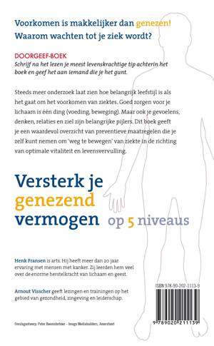Met 'Versterk je genezend vermogen op 5 niveaus' van Henk Fransen en Arnout Visscher neem je je gezondheid in eigen hand. Steeds meer onderzoek laat zien hoe belangrijk leefstijl is als het gaat om voorkomen van ziektes. Goed zorgen voor je lichaam is één ding (voeding, beweging). Maar ook je gevoelens, denken, relaties en ziel zijn belangrijke pijlers. Henk Fransen en Arnout Visscher geven je een waardevol overzicht van preventieve maatregelen die je zelf kunt nemen om 'weg te bewegen van ziekte in de richting van optimale vitaliteit en levensvervulling.
