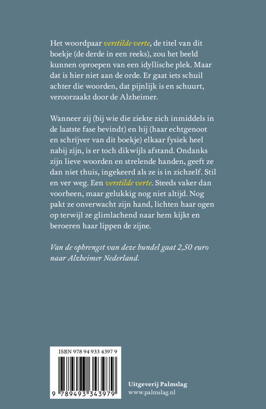 Het woordpaar 'verstilde verte', de titel van dit boekje (de derde in een reeks), zou het beeld kunnen oproepen van een idyllische plek. Maar dat is hier niet aan de orde. Er gaat iets schuil achter die woorden, dat pijnlijk is en schuurt, veroorzaakt door de Alzheimer.