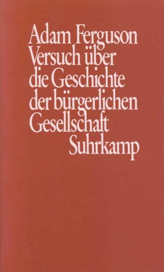 Fergusons Versuch enthält zentrale und originelle »soziologische Leitgedanken«. Das Zusammenleben der Menschen in Gruppen, ihre gesellschaftlichen Verhaltensweisen, die sozialen Normen, Verhältnisse und Prozesse werden als »Grundtatsachen« der menschlichen Geschichte begriffen. Doch die soziologischen Einsichten haben für Ferguson ihren Sinn nicht in sich selbst. Sie sind Vorstufe und Teil einer ebenso umfassenden wie differenzierten Kritik an der »verfeinerten« Kommerzgesellschaft seiner Zeit. Gegen sie führt Ferguson die politisch-moralischen Maßstäbe antiken Republikanismus und Humanismus ins Feld, zeitgemäß zu modifizierende Grundlagen einer wahren »bürgerlichen Gesellschaft« (civil society), und untersucht Unterschiede und Gemeinsamkeiten der verschiedensten Gesellschaften. Die »wilden« und »barbarischen« Gesellschaften geraten hierbei ebenso in den Blick wie die »verfeinerten« und »kommerzialisierten« Gesellschaften in seinem eigenen Umfeld. Diese Perspektive ermöglicht Ferguson grundlegende Einsichten, die über die modische Zivilisationskritik seiner Zeit hinausgehen. Im Mittelpunkt seiner Aufmerksamkeit steht der Prozeß gesellschaftlicher Arbeitsteilung, der sich in der modernen Gesellschaft seiner Zeit durchsetzt. Er wird von ihm einerseits als Quelle von Ökonomie und Produktivität erkannt und durchaus begrüßt. Andererseits unterzieht Ferguson die negativen Auswirkungen dieser Arbeitsteilung, die er in Entfremdung, politische Apathie und Korruption münden sieht, einer scharfen Kritik. Er nimmt die Grenzen in den Blick, die dem Fortschreiten der Arbeitsteilung und der ihr inhärenten Produktivität von ihren ökonomischen, sozialen, kulturellen und politischen Folgen her gesetzt sind.