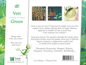 Léon le petit caméléon se met au vert ! Il parcourt la jungle, joue avec ses copains, jardine, plonge dans un lagon tahitien, aime la menthe à l'eau et pour finir fait exploser les couleurs ! Douanier Rousseau, Hopper, Raysse, Gauguin, Véronèse, Cézanne, Kandinsky...