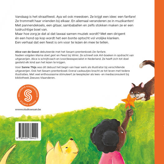 Vandaag is het straatfeest. Aya wil ook meedoen. Dan krijgt ze een idee: een fanfare! Ze trommelt haar vrienden bij elkaar. Met pannen, een gitaar, sambaballen, trompetten en zelfs stokken verzamelen de kinderen steeds meer muzikanten uit de buurt. Iedereen doet mee, met of zonder echt instrument.