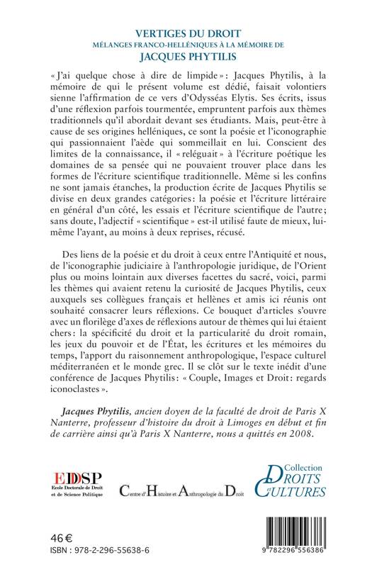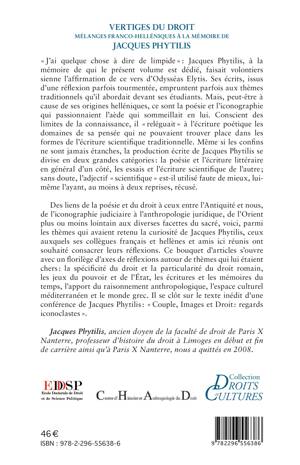 Des liens de la poésie et du droit à ceux entre l'Antiquité et nous, de l'iconographie judiciaire à l'anthropologie juridique, de l'Orient aux diverses facettes du sacré, voici des thèmes qui avaient retenu la curiosité de Jacques Phytilis. Ce bouquet d'articles constitue un florilège de réflexions sur des thèmes qui lui étaient chers.