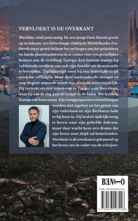 Marokko, eind jaren zestig. De zeer jonge Faris Skarmi groeit op in Askram, een klein dorpje vlakbij de middellandse zee. Steeds meer groeit in hem het verlangen om zijn primitieve en harde plattelandsleven in te ruilen voor een gerieflijker bestaan aan de overkant, Europa. Tegelijkertijd voert hij een innerlijke strijd rond dat verlangen. Door aanhoudende droogte en nog diepere armoede wordt een aftocht onvermijdelijk. Hij vertrekt via een tussenstop in Tanger naar Barcelona, waar hij aan de slag gaat als hulpje in de bouw. Het leven in Europa valt hem zwaar. De hooggespannen verwachtingen worden niet ingelost en het gemis van zijn vaderland en dierbaren hakt erin. Hij keert terug naar zijn geliefde Askram, maar ditmaal zal hij Askram op een zeer wrede manier beleven. Vervloekt is de overkant is gebaseerd op het leven van de vader van de schrijver.
