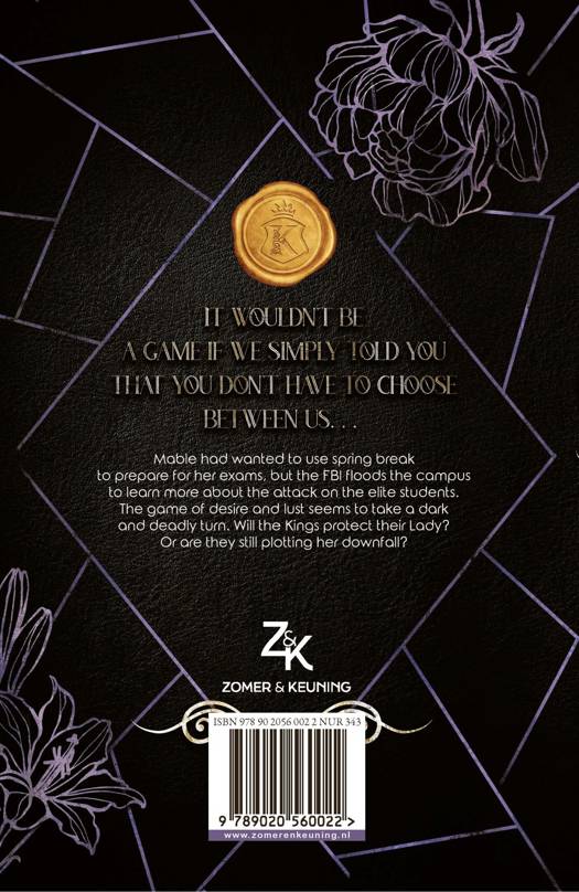 Mable had wanted to use spring break to prepare for her exams, but everything turns out differently than she planned. The FBI floods the campus to learn more about the attack on the elite students and not even the Kings know what Mable has discovered and what she is hiding from them. The game she plays with the Kings seems to take a dark and deadly turn. Will the Kings protect their Lady? Or are they still plotting her downfall?