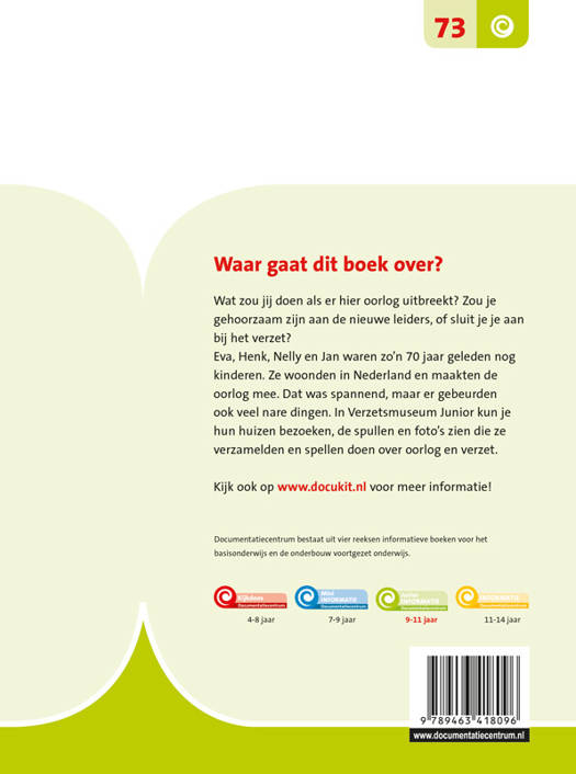 Wat zou jij doen als er hier oorlog uitbreekt? Zou je gehoorzaam zijn aan de nieuwe leiders, of sluit je je aan bij het verzet? Eva, Henk, Nelly en Jan waren zo’n 70 jaar geleden nog kinderen. Ze woonden in Nederland en maakten de oorlog mee. Dat was spannend, maar er gebeurden ook veel nare dingen. In Verzetsmuseum Junior kun je hun huizen bezoeken, de spullen en foto’s zien die ze verzamelden en spellen doen over oorlog en verzet.