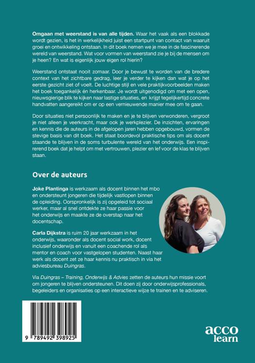 Omgaan met weerstand is van alle tijden. Waar het vaak als een blokkade wordt gezien, is het in werkelijkheid juist een startpunt van contact van waaruit groei en ontwikkeling ontstaan. In dit boek nemen we je mee in de fascinerende wereld van weerstand. Wat voor vormen van weerstand zie je bij de mensen om je heen? En wat is eigenlijk jouw eigen rol hierin?