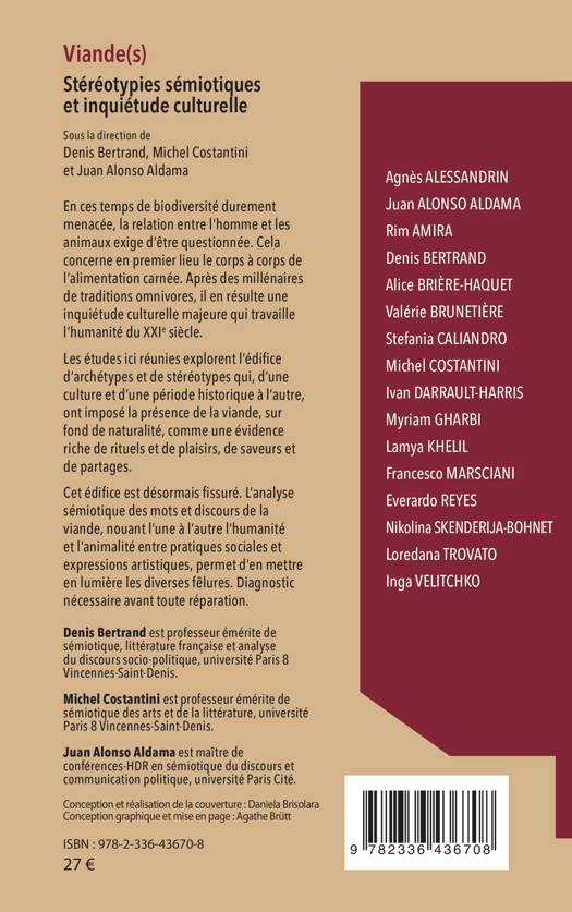 En ces temps de biodiversité durement menacée, la relation entre l'homme et les animaux exige d'être questionnée. Cela concerne en premier lieu le corps à corps de l'alimentation carnée. Après des millénaires de traditions omnivores, il en résulte une inquiétude culturelle majeure qui travaille l'humanité du XXIe siècle. Les études ici réunies explorent l'édifice d'archétypes et de stéréotypes qui, d'une culture et d'une période historique à l'autre, ont imposé la présence de la viande, sur fond de naturalité, comme une évidence riche de rituels et de plaisirs, de saveurs et de partages. Cet édifice est désormais fissuré. L'analyse sémiotique des mots et discours de la viande, nouant l'une à l'autre l'humanité et l'animalité entre pratiques sociales et expressions artistiques, permet d'en mettre en lumière les diverses fêlures. Diagnostic nécessaire avant toute réparation.