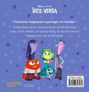 Une histoire chaque soir de la semaine, pour un moment de lecture en compagnie de Riley et de ses Émotions de Vice-Versa! – Un recueil de 7 histoires richement illustré et facile à lire, pour vivre les incroyables aventures de l'adolescente et les Émotions qui résident dans sa tête. – Une maquette claire et efficace, avec des textes courts et rythmés.