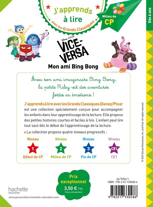 Avec son ami imaginaire Bing Bong, la petite Riley vit des aventures fortes en émotions ! J’apprends à lire avec les Grands Classiques Disney Pixar est une collection spécialement conçue pour accompagner les enfants dans leur apprentissage de la lecture. Elle propose des petites histoires courtes et faciles à lire. L’enfant peut lire tout seul dès le début de l’apprentissage de la lecture.