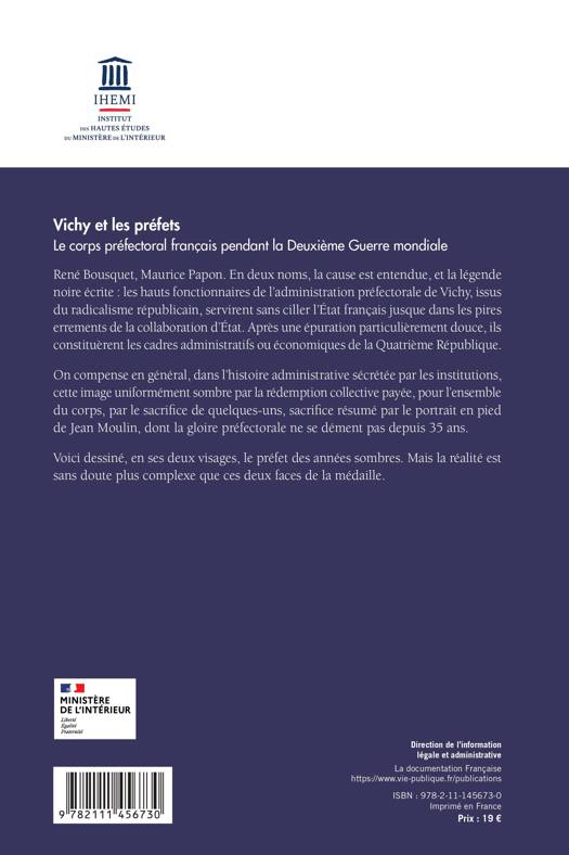 En 2016 furent organisées, à l’initiative du ministère de l’Intérieur, des rencontres sur le thème : Préfets et préfectures pendant la Seconde Guerre mondiale. Cet ouvrage à vocation à restituer sous forme d’articles les actes de ces journées.