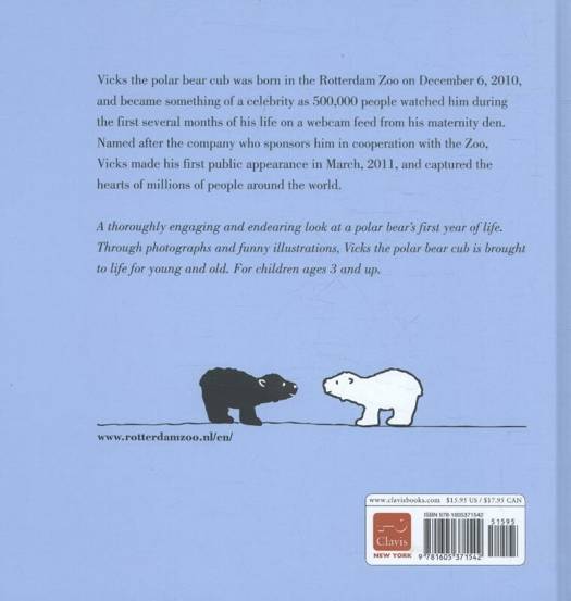 A thoroughly engaging and endearing look at a polar bear's first year of life. Through photographs and funny illustrations, Vicks the polar bear cub is brought to life for young and old. For children ages 3 and up.