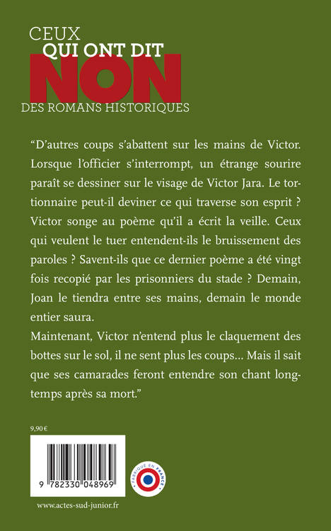 Le 11 septembre 1973, à Santiago du Chili, Augusto Pinochet prend le pouvoir et installe une dictature à la place du gouvernement démocratique du président Allende. Ce jour-là, Victor Jara, un jeune auteur-compositeur proche des socialistes, est arrêté et emprisonné avec des centaines d'autres personnes dans le stade de Santiago. Il y sera exécuté, non sans avoir eu les mains écrasées par un militaire. Mais son chant de protestation continuera à résonner longtemps dans le stade... La dictature a plusieurs visages : celui de Pinochet, qui finit par mourir à un âge avancé sans avoir répondu de ses crimes. Ou bien celui de la junte militaire birmane, qui séquestre le prix Nobel de la Paix Aung San Suu Kyi et élimine tous ses opposants. Ou tant d'autres encore à travers le monde.