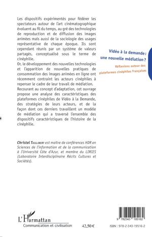 Les dispositifs expérimentés pour fédérer les spectateurs autour de l'art cinématographique évoluent au fil du temps. Cet ouvrage propose une analyse des caractéristiques des plateformes cinéphiles de Vidéo à la Demande, des stratégies de leurs acteurs, et de la façon dont ces derniers travaillent un modèle de médiation qui a traversé l'ensemble des dispositifs caractéristiques de l'histoire de la cinéphilie.