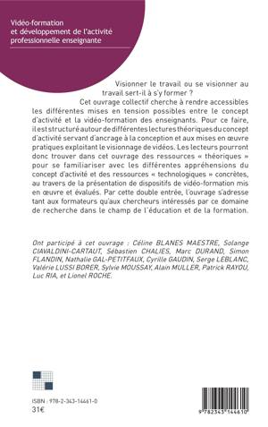 Visionner le travail ou se visionner au travail sert-il à s'y former ? Comment rendre accessible le concept d'activité et la vidéo formation des enseignants ? Cet ouvrage propose des ressources théoriques pour se familiariser avec les différentes appréhensions du concept d'activité et des ressources "technologiques" concrètes au travers de la présentation de dispositifs de vidéo-formation mis en oeuvre et évaluées.