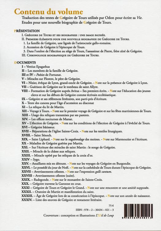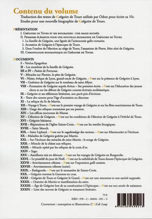 Présentation de textes repris ou cités directement par Odon de Cluny pour élaborer sa biographie sur Grégoire de Tours, complétés par des extraits des Histoires de l'évêque.