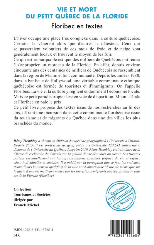 Qui sont ces hivernants et touristes québécois ? Pourquoi se regroupent-ils ? Pourquoi faire communauté touristique ? Les plus aventureux, les immigrants, pourquoi ont-ils choisi ce coin de la Floride en particulier ? Floribec est un noyau d'immigrants et de migrants canadiens-français en terre américaine. Il est né du tourisme, de migrations volontaires, et en dépend toujours, ce qui n'a rien à voir avec les migrations forcées du XVIIIe siècle. Floribec un fort bel exemple de migrations nouvelles, transnationales, non forcées, comme c'est le cas de nombreux Britanniques, Allemands et autres Européens qui fréquentent le sud sur une base annuelle, saisonnière, voire mensuelle pour travailler ou par pur plaisir.