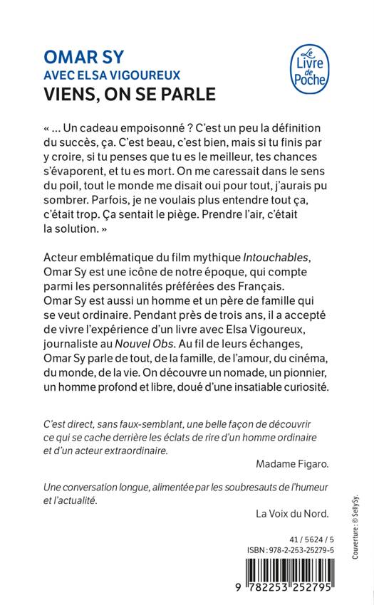 Acteur emblématique du film mythique Intouchables, Omar Sy est une icône de notre époque, qui compte parmi les personnalités préférées des Français. Omar Sy est aussi un homme et un père de famille qui se veut ordinaire. Pendant près de trois ans, il a accepté de vivre l’expérience d’un livre avec Elsa Vigoureux, journaliste au Nouvel Obs. Au fil de leurs échanges, Omar Sy parle de tout, de la famille, de l’amour, du cinéma, du monde, de la vie. On découvre un nomade, un pionnier, un homme profond et libre, doué d’une insatiable curiosité.