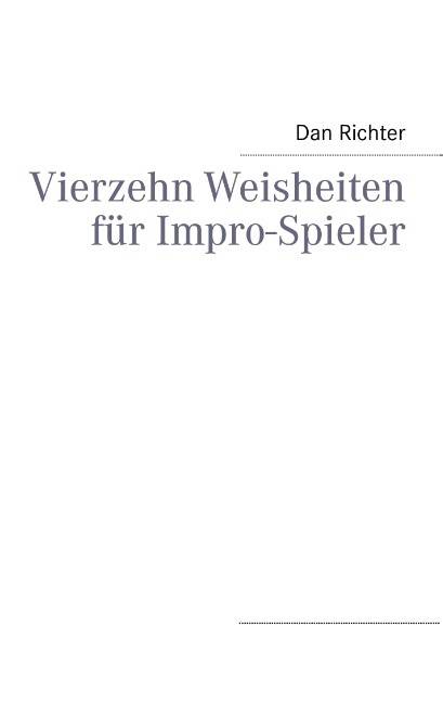 Dieses Buch richtet sich sowohl an Profis als auch an Neulinge des Improtheaters. Die vierzehn Weisheiten sollen Anregung und Inspiration sein, als Blockadebrecher dienen und die Rückbesinnung auf grundlegende Improvisations-Tugenden erleichtern. Hab keine Angst // Akzeptiere // Spiele das Spiel // Behaupte // Setz dich ein // Hör zu // Sei wach für Formen // Unterstütze deinen Partner // Unterstütze die Szene // Beobachte deine Umwelt // Beobachte die Künste // Wisse Bescheid // Trainiere // Spiele die Show, die du selber sehen willst //