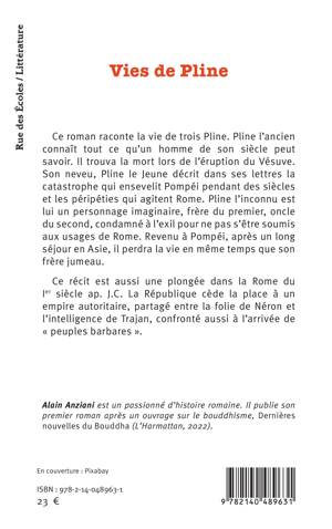 Ce roman raconte la vie de trois Pline. Pline l'ancien connaît tout ce qu'un homme de son siècle peut savoir. Il trouva la mort lors de l'éruption du Vésuve. Son neveu, Pline le Jeune décrit dans ses lettres la catastrophe qui ensevelit Pompéi pendant des siècles et les péripéties qui agitent Rome. Pline l'inconnu est lui un personnage imaginaire, frère du premier, oncle du second, condamné à l'exil pour ne pas s'être soumis aux usages de Rome. Revenu à Pompéi, après un long séjour en Asie, il perdra la vie en même temps que son frère jumeau. Ce récit est aussi une plongée dans la Rome du Ier siècle ap. J.C. La République cède la place à un empire autoritaire, partagé entre la folie de Néron et l'intelligence de Trajan, confronté aussi à l'arrivée de « peuples barbares ».