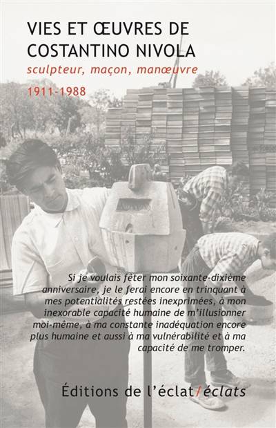 « éclats » “Costantino Nivola a choisi de n’appartenir à aucune catégorie” a écrit son amie Dore Ashton, et le parcours de ses vies et de ses œuvres présentées ici témoigne de cette liberté absolue, comme de l’extrême générosité avec laquelle il a appréhendé le monde. Se définissant lui-même artiste, maçon, manœuvre, il n’oubliera jamais ce qu’il avait été pour être ce qu’il allait devenir. De la Sardaigne encore archaïque du début du 20e siècle où il naît, à la New York artistique des années 40, où il fuit le fascisme et les lois raciales, Nivola sera graphiste, peintre, sculpteur et travaillera avec les plus grands architectes de son temps (Breuer, Saarinen, Sert, Peressutti & Cie) jusqu’à sa mort en 1988. Aux côtés de sa femme Ruth Guggenheim, il fut l’ami fidèle de compagnons d’exil comme Jackson Pollock, De Kooning, Fernand Léger, Calder ou Saul Steinberg, qui reconnaîtra en lui “l’un des rares hommes authentiques, qui était bon et n’essayait pas d’apparaître meilleur”. Biographie établie par Michel Valensi suivie de Fred Licht : “Nivola, sculpteur des architectes” & Saul Steinberg : “Un géant vu de loin”.