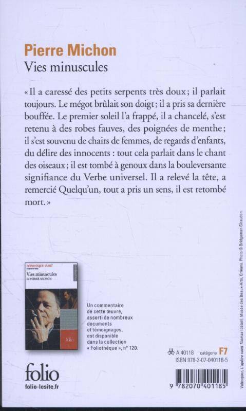 "Il a caressé des petits serpents très doux ; il parlait toujours. Le mégot brûlait son doigt ; il a pris sa dernière bouffée. Le premier soleil l'a frappé, il a chancelé, s'est retenu à des robes fauves, des poignées de menthe ; il s'est souvenu de chairs de femmes, de regards d'enfants, du délire des innocents : tout cela parlait dans le chant des oiseaux ; il est tombé à genoux dans la bouleversante signifiance du Verbe universel. Il a relevé la tête, a remercié Quelqu'un, tout a pris sens, il est retombé mort."