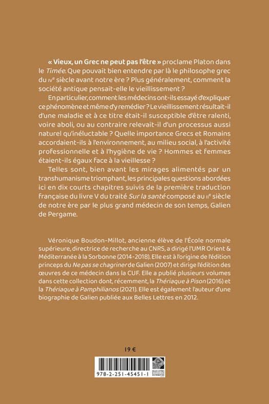 Telles sont, bien avant les mirages alimentés par un transhumanisme triomphant, les principales questions abordées ici en dix courts chapitres suivis de la première traduction française du livre V du traité Sur la santé composé au IIe siècle de notre ère par le plus grand médecin de son temps, Galien de Pergame.