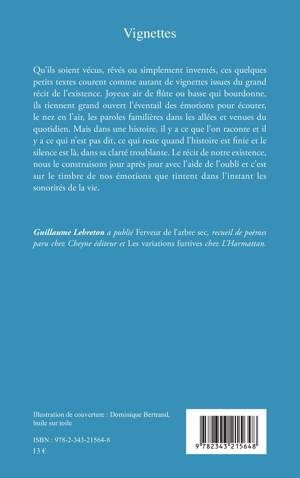 Qu'ils soient vécus, rêvés ou simplement inventés, ces quelques petits textes courent comme autant de vignettes issues du grand récit de l'existence. Joyeux air de flûte ou basse qui bourdonne, ils tiennent grand ouvert l'éventail des émotions pour écouter, le nez en l'air, les paroles familières dans les allées et venues du quotidien. Mais dans une histoire, il y a ce que l'on raconte et il y a ce qui n'est pas dit, ce qui reste quand l'histoire est finie et le silence est là, dans sa clarté troublante. Le récit de notre existence, nous le construisons jour après jour avec l'aide de l'oubli et c'est sur le timbre de nos émotions que tintent dans l'instant les sonorités de la vie.
